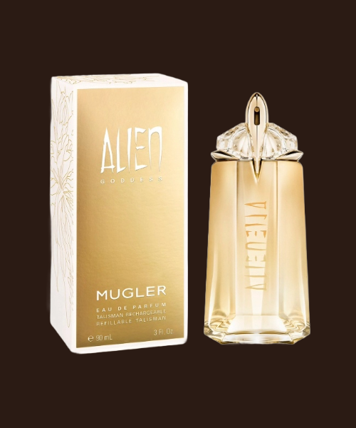 Alien Goddess BY THIERRY MUGLER 3.0 FL.OZ. EDP SPRAY FOR WOMEN. A empowering fragrance that celebrates divine femininity. It opens with sparkling Italian bergamot and coconut water, flows into a heart of jasmine grandiflorum, and settles into warm, comforting notes of bourbon vanilla. Elegant, luminous, and modern — it’s a scent that inspires confidence and inner light.